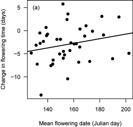 They found that across all taxa, flowering time advanced by 3 days during the last 50 years compared to prior to 1960, and by 7.7 days in those species that showed significant advancement in flowering time.