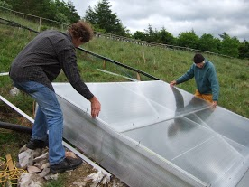 Andrew and Phil mending a rain shelter
