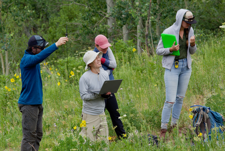 This project involved a number of undergraduate and graduate students in education programs based at the Rocky Mountain Biological Laboratory, who had a fun time exploring these diverse landscapes and learning a new set of tools. We all had a lot of fun bringing batteries and computers and other equipment out to some improbable mountain slopes.