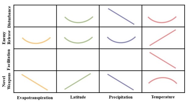The balance of those biotic interactions gains and losses may limit or facilitate non-native species establishment. Indeed, many of the biological invasion hypotheses propose biotic interactions as the main mechanism to explain non-native species success (Mitchell et al., 2006). Despite the evidence that the strength of biotic interactions varies with the abiotic context, we lacked a clear understanding about the importance of invasion mechanisms across abiotic gradients.