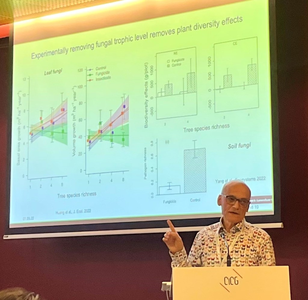After lunch, Pablo Marquet gave a plenary lecture on the need to better integrate theories in ecology as a first step towards a more logically consistent ecological theory. In the afternoon, I switched among a few different sessions on mountain ecology and biological invasions. Mia Svensk, a PhD student I co-supervise, gave her first in-person conference talk, highlighting nitrogen translocation by highland cattle from N-rich encroached areas toward N-poor pastures. Helen Roy (People and Nature AE) explained how to predict (i.e., by mapping the invasion potential of each alien species) and then prevent biological invasion, with some alien invasion remaining difficult to predict e.g. soil pathogens, due to the lack of research and knowledge. The last talk I listened to was given by Bernhard Schmid, the Journal of Ecology Eminent Ecologist 2020, on the important role of trophic interactions in mediating diversity-productivity relationships (e.g. removing fungi from the soil suppresses this relationship).