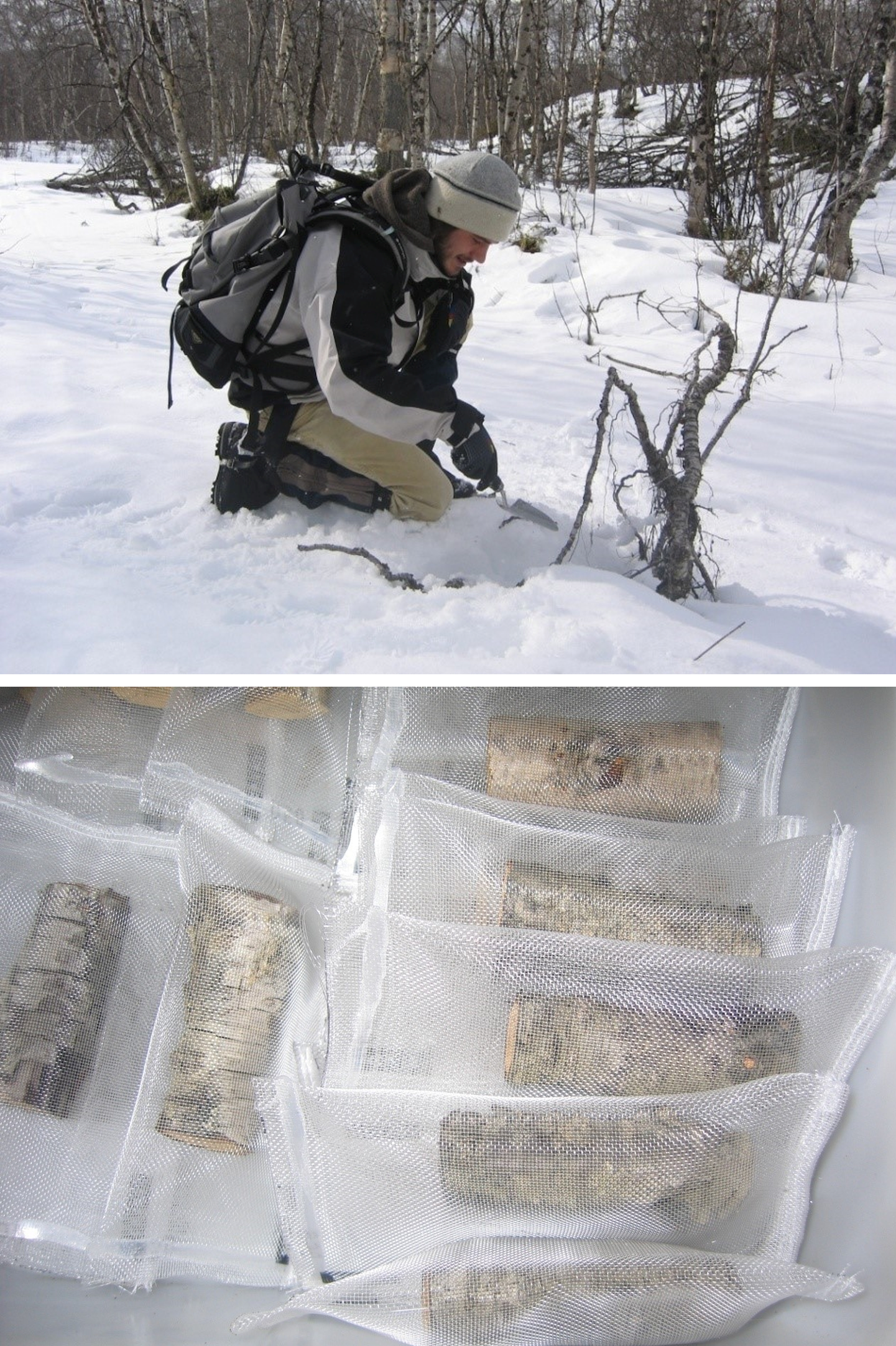Of course, plants are more than leaves and a lot of the litter in and on the soil is derived from roots and stems. So, to understand the role of vegetation composition in the turnover of dead plant material, we need to compare the litter decomposabilities of the different plant organs across tree species. This is exactly what we tried to do, again with Grégoire as the driving force (photos 4). We showed that the PES for living plant organs can be extended to a PES for decomposability in a subarctic flora (Freschet et al. 2012), while fine root and leaf decomposability across species tends to be coordinated also across various ecosystems worldwide (Freschet et al. 2013, virtual issue). This means that the whole-plant species ranking from slow to fast tissue turnover of living plants (see above) can be extended to the tissue turnover of their dead parts. Again, these findings are important for our understanding of how plant species composition in ecosystems affects their rates of carbon and nutrient cycling.