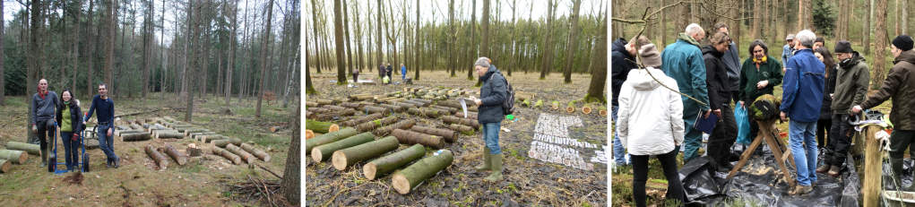 It should be said that our evidence for the PES of decomposability is based on evidence from very wide-ranging species, from small herbs to trees, and not taking into account the big trunks of trees. In fact, studies that have focussed on trees only found weaker or poorer coordination of the decomposability between plant organs across species, especially when focussing on coarse dead wood and leaves (Pietsch et al. 2014; Zuo et al. 2018). Which brings me to one of my pet topics in this millennium: deadwood decomposition. This interest started in 2005 during a workshop in Sydney, organised by Mark Westoby (see above), one of my other heroes in comparative plant ecology. Mark had brought together a few dozen plant trait people and global vegetation-climate modellers to see how continuous plant trait variation could help to improve current models or build new models to better predict the consequences of climate and vegetation change worldwide; and how to standardize and assemble trait datasets for this. I presented some of my work on leaf litter decomposability, which (I think…) drew some interest because of its link to nutrient (and somewhat also carbon) cycling globally. But it also led to discussions in the corridors with the climate modellers, who told me that for global carbon dynamics and climate the turnover (or not) of coarse deadwood is of much greater importance than that of leaves. And that they had so far focussed on deadwood quantity without much regard for its quality. This gradually set us thinking about the importance of interspecific variation in wood traits as drivers of coarse wood decomposition. It led to Will Cornwell, Christian Wirth and I organising two follow-up workshops on deadwood decomposition in Sydney, and one in New Zealand, also as part of Mark’s highly productive ARC Network of Vegetation Function. In those workshops we brought together current knowledge and data on relationships between wood traits and decomposition rates worldwide (Cornwell et al. 2009; Weedon et al. 2009; Pietsch et al. 2014). These papers made the point that variation in wood traits in given regions or ecosystems are very important for deadwood decomposition rates, probably as important as macroclimate or local environmental variation. They also made it clear that multi-species empirical data specifically collected with trait-decomposition relationships in mind were sadly missing in the literature. This is how the idea was born for a tree cemetery experiment, akin to the forensic “body bag experiment” you see in movies. After gradually assembling a growing team of enthusiasts from Wageningen University, Utrecht University and “my” Vrije Universiteit Amsterdam, and after much discussion about theory and the huge logistic hurdles to overcome, we decided to simply get the diaries out and book two weeks of field days in the winter of 2012, i.e. to act rather than talk even more. Deadlines really focus the mind when research designs and protocols need to be devised… To me, the whole process of setting up and running “Loglife” (Cornelissen et al. 2012), in my own temperate lowland country, has been one of the most heart-warming and exciting research experiences ever (and still is now). This experiment, including its extensions in 2013 and 2015, has involved well over 1 km length of 25 cm diameter logs (of 1 m length each) of a total of 25 tree species of wide-ranging phylogeny and functional types, all decomposing in two contrasting sites (photos 5). One vivid memory from the ambitious setting up fieldwork is that my arms failed one night after carrying log after log all day and I had to be spoon-fed my dinner like a baby. It is amazing how much can be done with a huge amount of enthusiasm, team spirit and complementary expertise. And I am proud to say that 10 years and many papers later, with the experiment still running successfully now, we have only ever talked about the science, practicalities and manuscripts around Loglife, having hardly ever talked about money. All groups have always volunteered some funds, tools and precious time if and when needed and the collaboration has been even more harmonious and pleasant than I could have hoped for. Bottom up enthusiasm, that’s what science needs. Amongst many interesting findings from Loglife on decomposition rates and (invertebrate and microbial) diversity (literally Log Life!), I here like to highlight our recent paper on how the (resource-rich, decomposable) inner bark and (protective, decay-recalcitrant) outer bark play very different roles in deadwood decomposition (Lin et al. 2022). This work complements other recent papers about how important bark traits in general are for decomposition rates of both bark itself and the wood inside it (Dossa et al. 2018 in this journal; Tuo et al. 2021; Chang et al. 2018); and for invertebrate communities (Zuo et al. 2016; Andringa et al. 2019).