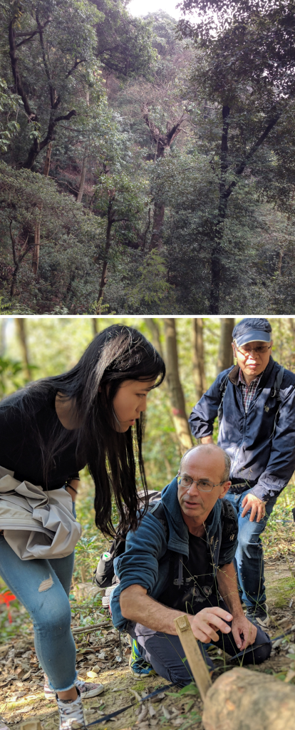 A few years later Enrong Yan, at East China Normal University in Shanghai, kindly invited me to help design an experiment building on Loglife, but with very different context (subtropical monsoon forest, termites). I am so grateful to this day that I got involved. FUNLOG (where “fun” stands for functional ecology as well as fun) is an enormous tree cemetery experiment involving deadwood of 43 subtropical species in two sites and a gold mine for testing hypotheses about, for instance, dynamic relationships among species’ wood (and bark) traits, invertebrates and decomposition rates (photos 7). I have to mention Chao Guo in particular here; her work on these dynamic relationships (e.g. Guo et al. 2021, virtual issue) is of great originality and quality. I am very lucky to count her, and subsequently other prodigies of Enrong (Tuo et al. 2021 on the bark economics spectrum, termites and wood decomposition; Ci et al. 2022 in this journal on foliar nutrient homeostasis in trees ) among the young scholars I guide with him. My next blog will feature various other key young Chinese scientists and their supervisors at other institutes…
