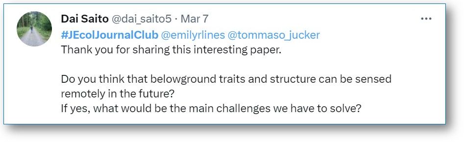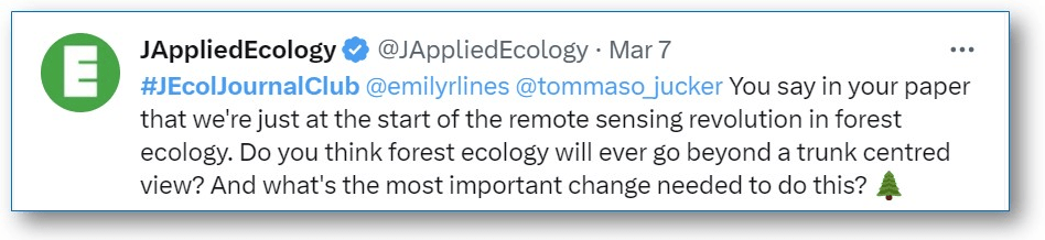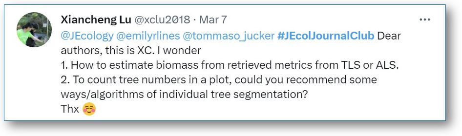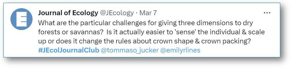The featured paper was ‘The shape of trees: Reimagining forest ecology in three dimensions with remote sensing‘ by Emily Lines and Tommaso Jucker et al., which is part of the Grime Reviews series ‘What can remote sensing do for plant ecology?‘.