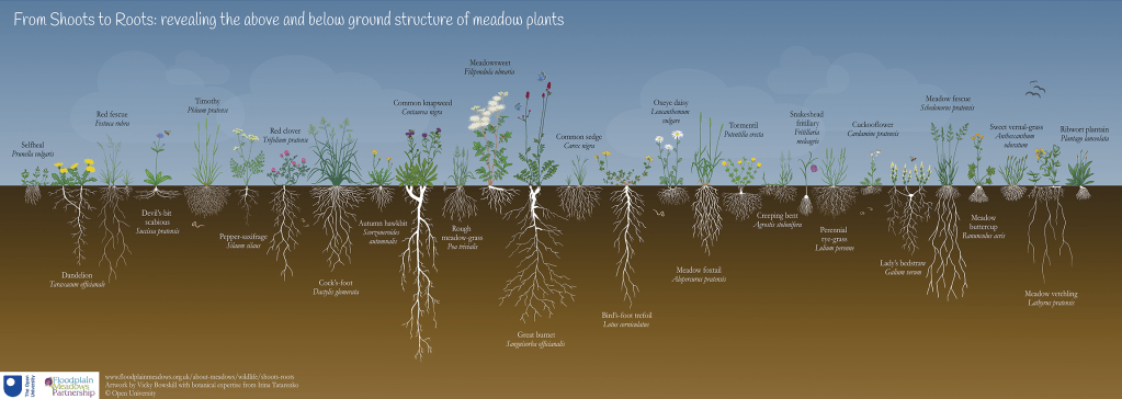 Citation: Bowskill V. and Tatarenko I. (2021) From Shoots to Roots: revealing the above and below ground structure of meadow plants. Floodplain Meadows Partnership.