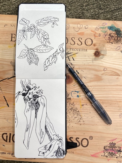 I mostly use watercolors, ballpoint pens, fine liners and my iPad for drawing and painting.
