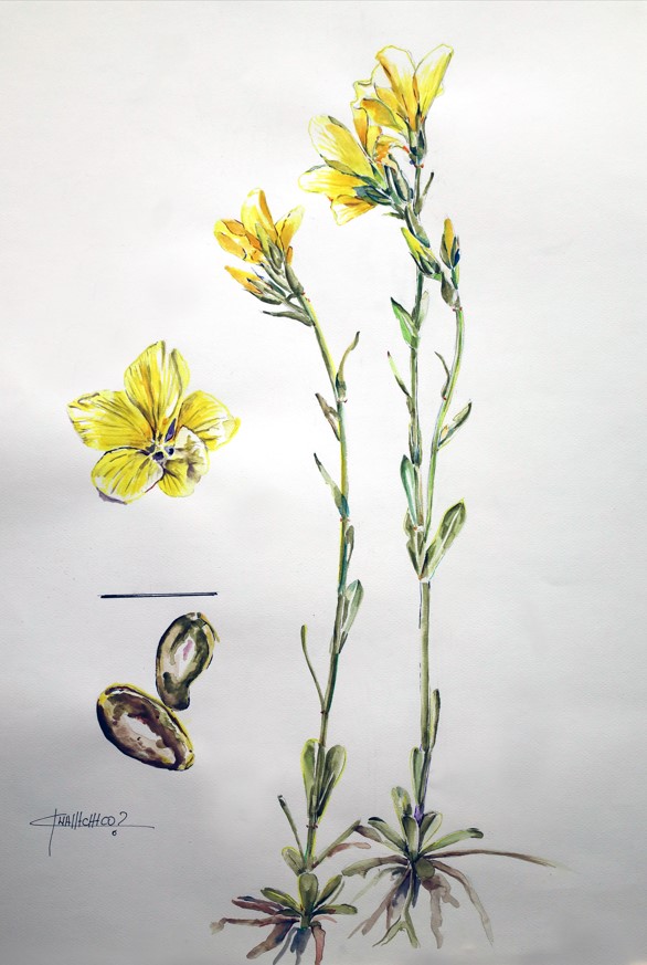 The charm and beauty of Linum dolomiticum, a protected species in Hungary’s Szénás Hills, were depicted in a pictorial piece using delicate yellow and green tones. This emphasized the significance of caring for these natural jewels.