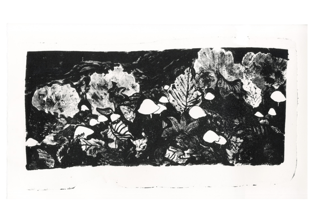 In my artistic practice, I immerse myself in nature, I go out into nature and use photography and drawing to pull out forms, and then take them into printmaking processes to allow the drawing to transform into new images –through process, material and surface.