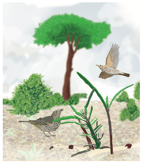 As we knew from previous studies, the assemblage of animals that dispersed Juniperus phoenicea seeds was functionally very diverse. This assemblage was strongly dominated by the main disperser, the song thrush (Turdus philomelos), but was also composed of generalist mammals and several bird species of medium and small size. However, what we did not know until now is the tremendous potential of these species to constantly add new maternal progeny to the seed rain. That is, thanks to their generalised behaviour, feeding on a multitude of different trees and dispersing their seeds in preferred microhabitats, frugivores generated a rich and maternally diverse seed rain along the entire gradient.