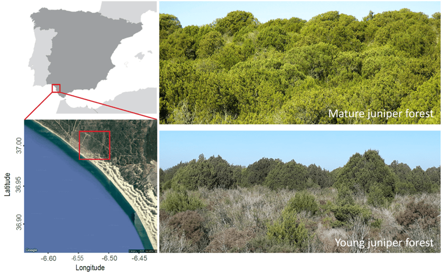 We focused on a population expansion gradient of a type of juniper, Juniperus phoenicea, in the Doñana Biological Reserve (Spain).