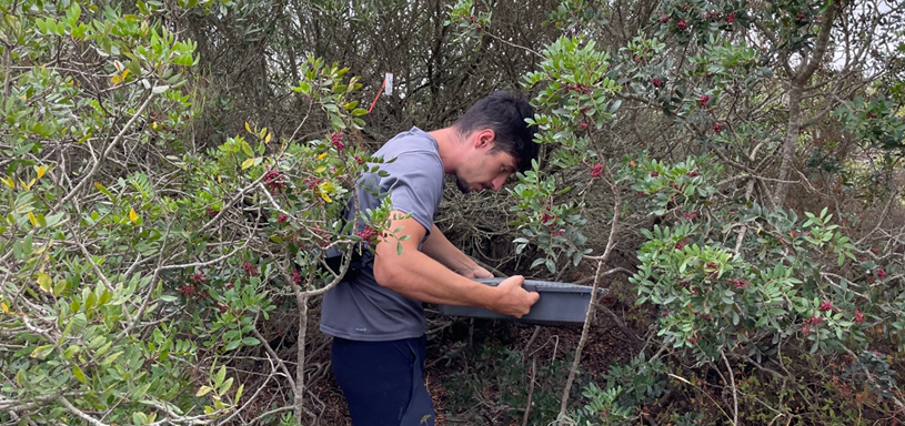 However, a threat is looming over these expanding plant populations. Rapid expansion in a species’ range can lead to a loss of diversity for natural populations. This is due to founder effects; when a small group of individuals become separated from the source population and found a new population. We thought that seed dispersal, mediated by frugivorous animals, could help to mitigate this loss of diversity. Exploring seed-rain patterns from a maternal perspective will help us to understand the role of plant-animal interactions in determining the composition and diversity of future forests.