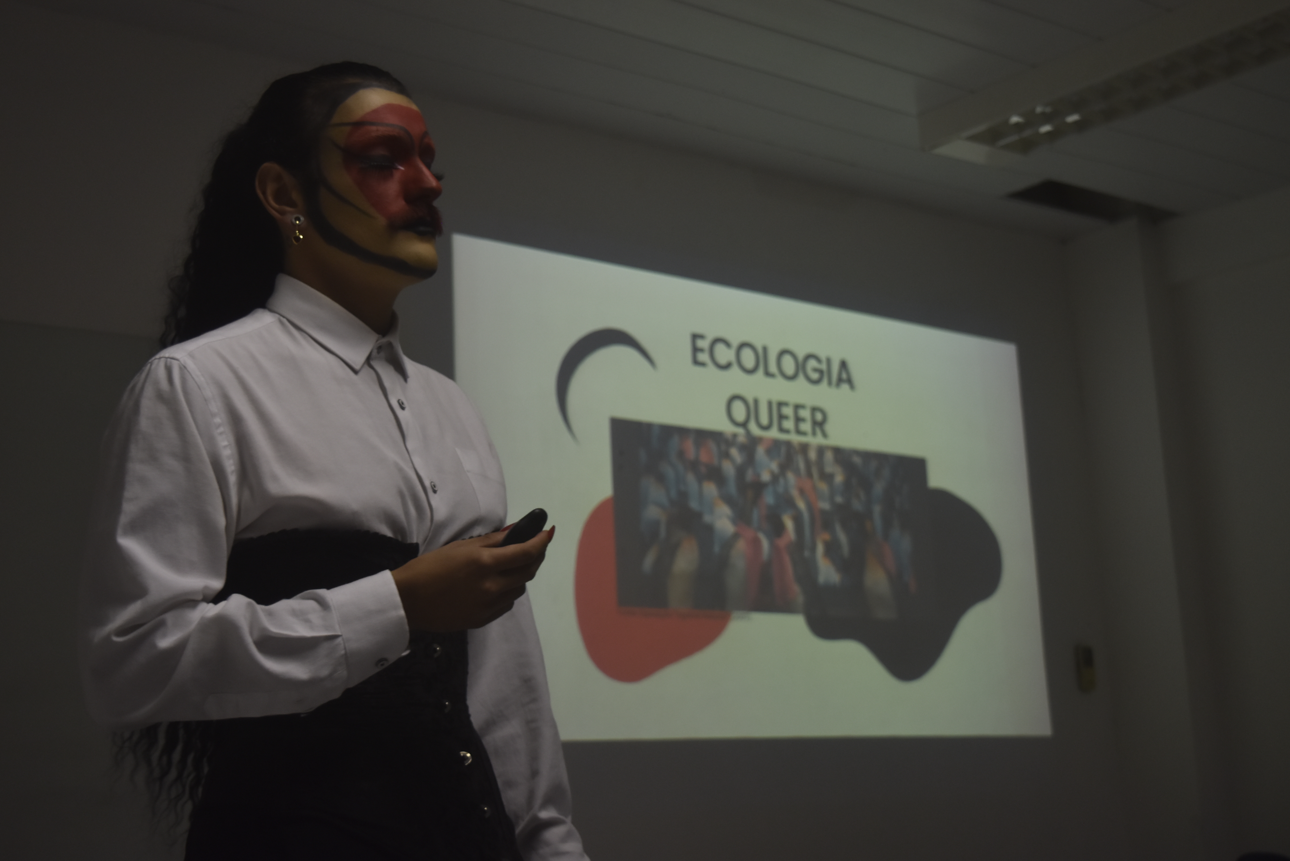 The lecture took place in June, which is internationally recognized as the month for redeem and celebrate LGBTQIAPN+ history. In a country that stands out as one of the most dangerous worldwide, for the LGBTQIAPN+ community, the decision to invite a drag queen to speak about science, diversity, inclusion and alternative perspectives within the field of Ecology was a deliberate choice. Considering different and often marginalized perspectives is becoming increasingly crucial, especially in the realm of science, where the primary goal is to gather information to comprehend the world around us, and with ecology it shouldn’t be different. And what is more inherently diverse and unconventional than nature? That was the goal to portray and discuss with the help of royalty Penelope obscura.