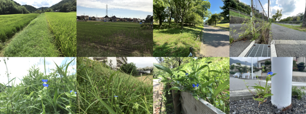 Our research group has focused on the native annual herb Commelina communis (Asiatic dayflower), which grows across a wide range of habitats—from satoyama landscapes (traditional Japanese rural landscape) to highly urbanised environments. We collected seeds from rural agricultural lands, urban agricultural lands, urban parks, and roadside habitats across the Kyoto–Osaka–Kobe metropolitan area, one of the world’s major megacities, and germinated them for trait measurements.