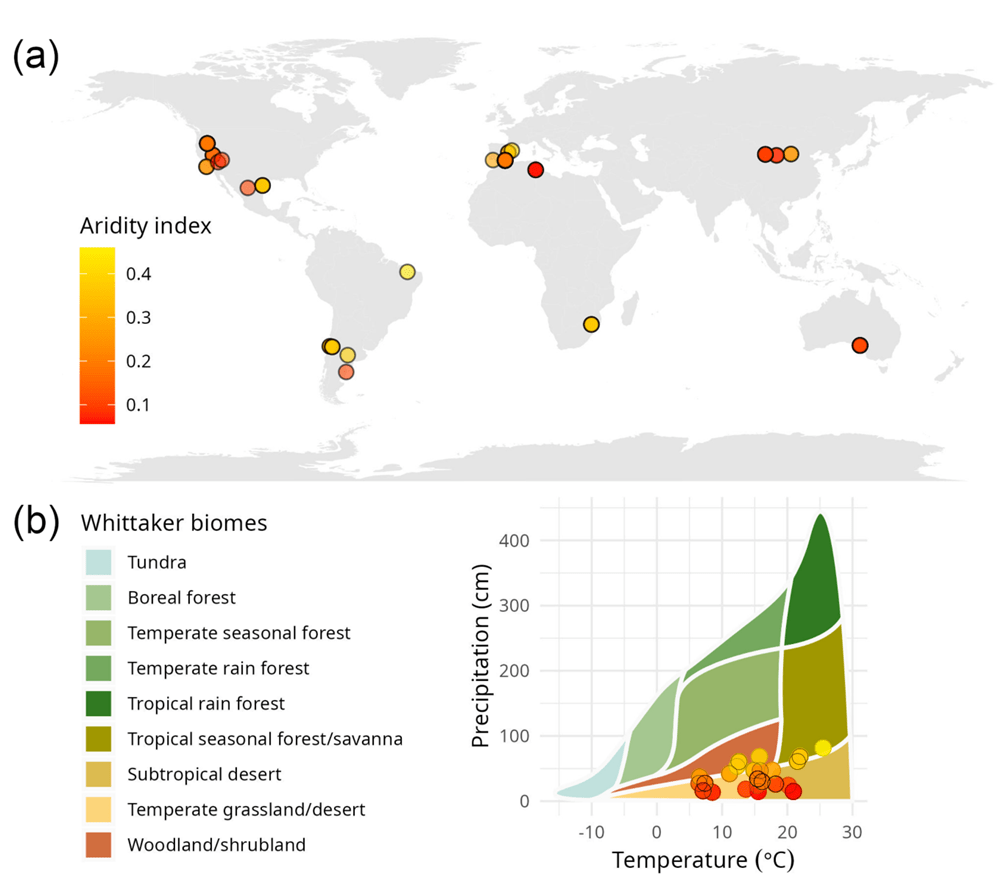 Over the past three decades, global studies on plant facilitation have aimed at understanding its drivers, focusing largely on the importance of resource availability gradients (stress gradient hypothesis). Also, more recent studies are exploring the global drivers of fertile island formation, showing that the strength of the fertile island effect varies globally. First, we thought: if facilitation intensity is measured as the relative difference in plant performance under a nurse plant relative to the open areas, could it be predicted by the relative difference in nutrient concentrations under that nurse plant compared to the open areas? So, we hypothesized that facilitation intensity would increase with stronger fertile island patterns (higher nutrient heterogeneity at a microsite level). Furthermore, overall ecosystem fertility, which is beyond microsite patterns, also varies among global drylands. Following the stress gradient hypothesis, facilitation should be more intense in more stressful ecosystems. So, we hypothesized that facilitation intensity would decrease with increasing ecosystem fertility (higher overall nutrient availability at the broader ecosystem level).