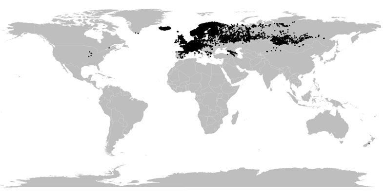 Outside of Britain and Ireland, wood crane’s-bill has an extensive Eurasian native distribution range, extending from the south coast of Greenland in the west all the way to Siberia, and from southern Europe, Asia Minor, and the Caucasus/Iran, all the way up to well above the arctic circle.