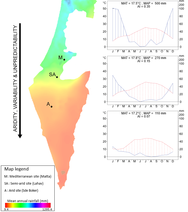 Under shrubs, however, this stabilising effect disappeared, likely because shrub canopies already reduce environmental extremes. Delayed germination did play a role, but only in the most arid and unpredictable open habitats, where it acted as an additional buffer alongside drought resistance