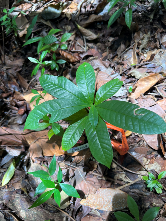 We used a recently developed analytical approach that improves on many earlier studies. This method estimates the effect of conspecific neighbours relative to the overall density of surrounding seedlings, while allowing density effects to be non-linear and accounting for large differences in baseline mortality among species. So, it allowed us to compare species’ responses to conspecific density and ask: how much does the risk of death increase with the addition of a single conspecific neighbor?